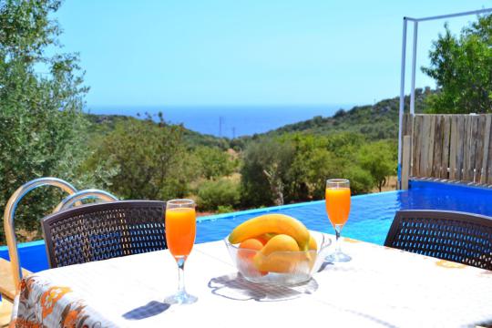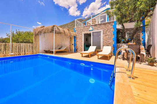 Villa Moren, Kaş Gökseki mevkiinde konumlanmış havuzu tam korunaklı kiralık tatil villasıdır. Deniz ve doğa manzarasına sahip bu güzel tatil villamızda huzur dolu bir tatil geçirebilirsiniz. 2 yatak odalı 4 kişi konaklama kapasitesi ile balayı çiftleri ve çekirdek aileler için ideal bir seçenektir.Yatak odasının içerisinde rahatlamınızı ve yorgunluğunuzu atmanıza yardımcı olacak jakuzi yer almaktadır.Kaş merkeze, 5.5 km mesafede ve plaja 1.7 km mesafededir. Özel havuzlu tatil villamızın havuz terası yabancı gözlerden uzak, muhafazakar villa seçeneklerimiz arasındadır.
