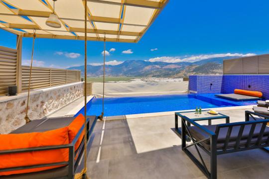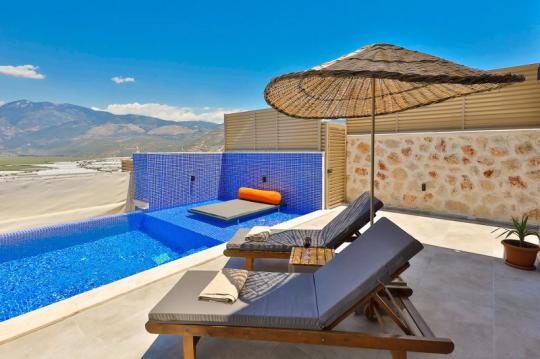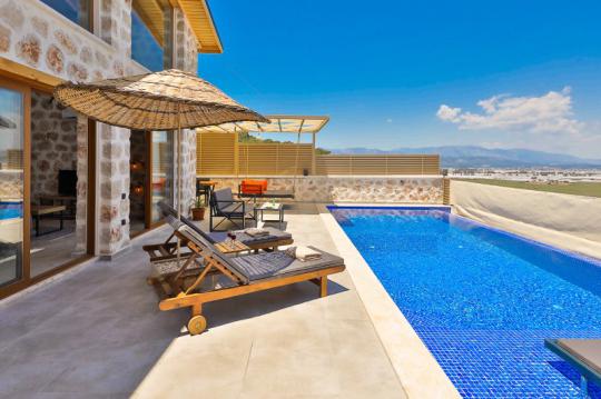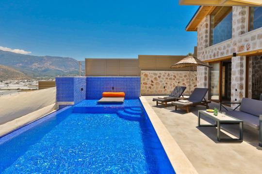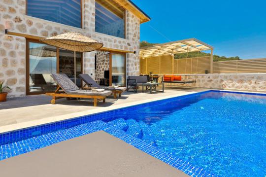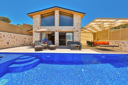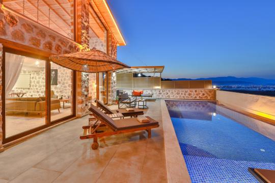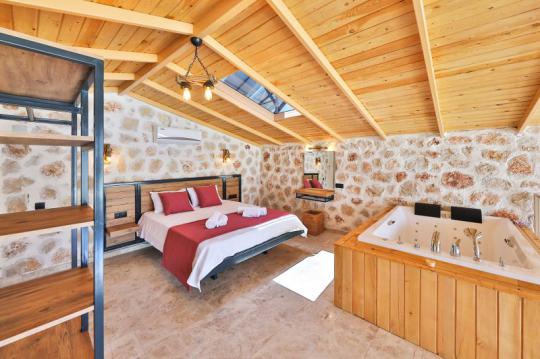 Villa Mosso, Kalkan Yeşilköy Bölgesi'nde yer alan korunaklı ve muhteşem doğa manzarasına sahip villamız 1 yatak odalı ve 2 kişilik konaklama kapasitesine sahiptir. Ahşap ve taş mimarinin hakim olduğu villamızın yatak odasında jakuzi yer almaktadır.