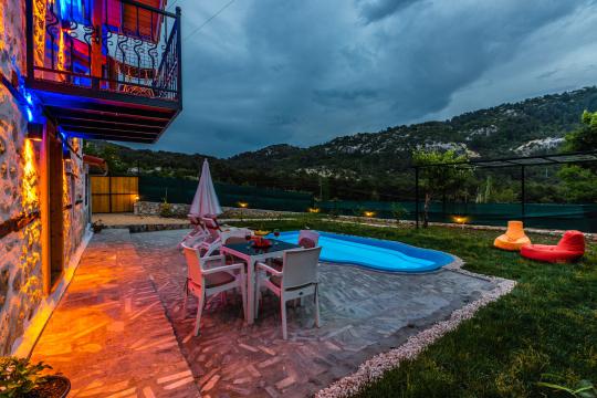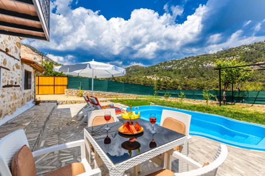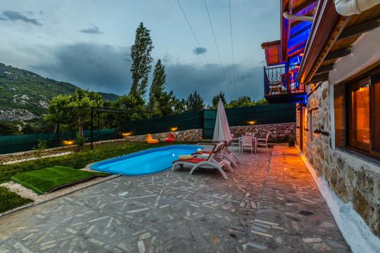 Villa Mountain, Kalkan İkizce mevkiide doğa içinde konumlanan villamız 1 yatak odalı 2 kişi konaklama kapasitelidir.Taş mimarisi ile dikkat çeken villamızın etrafı korunaklı olarak tasarlanmış jakuzili kiralık balayı villa seçeneklerimizdendir.