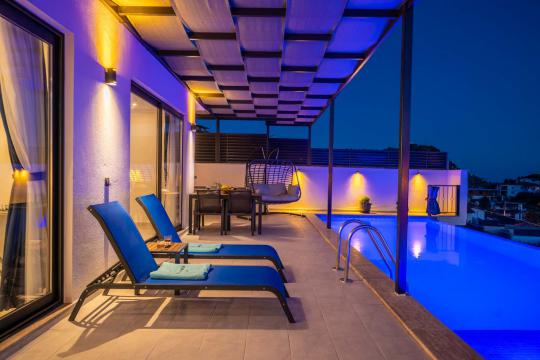 Villa Müdür , Kalkan Kördere bölgesinde yer alan eşsiz güzellikteki deniz ve doğa manzarasına ev sahipliği yapan villamız 2 yatak odalı ve 4 kişilik konaklama kapasitesine sahiptir. Kalkan'ın en özel manzarasını keyifle seyredebileceğiniz villamız tüm bölgeyi gün boyu kuş bakışı seyredebilmenize imkan tanır. Villa Müdür konukları için özenle tasarlanmış ve dekore edilmiştir. Villamızın içerisinde jakuzi bulunmaktadır. Bunun yanı sıra sizlere lüks ve konforlu bir tatil deneyimi sunan Villa Müdür ' ün, şezlong, oturma köşesi, yemek masası ve barbekü alanı yer almaktadır.