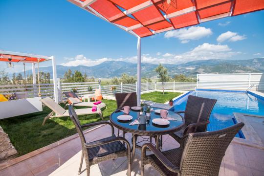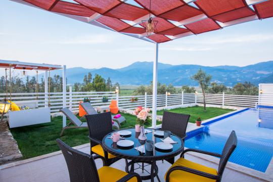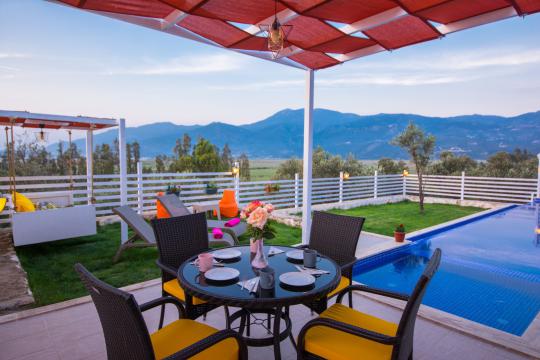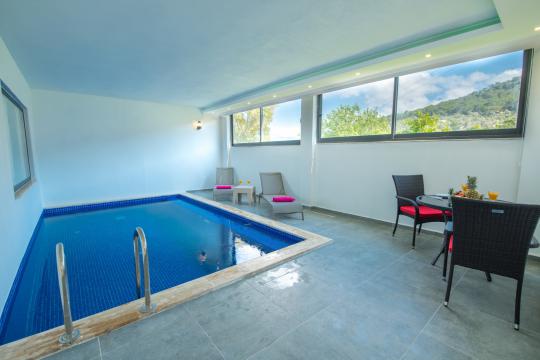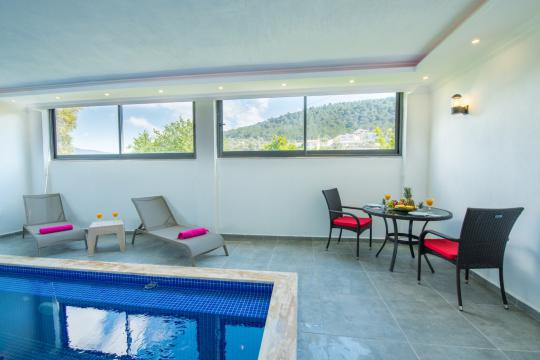 Villa Nar Çiçeği; Kalkan Patara Gemicik mevkiide konumlanmış özel havuzlu ve havuz alanı tamamen korunaklı muhafazakar kiralık tatil villa seçeneklerizdendir.Modern ve konforlu bir şekilde dizayn edilen villamızda 2 yatak odasıyla 4 kişilik konaklama imkanı sağlamaktadır. Sizlere kış aylarında da hizmet verebilmek adına kapalı ısıtma havuzu bulunmaktadır. Havuz terasının korunaklı olması nedeniyle, muhafazakar aileler ve balayı çiftleri için oldukça ideal bir villadır. Çocukların rahatça eğlenip vakit geçirebilmesi adına çocuk havuzu da bulunan villamızda herşey en ince ayrıntısına kadar düşünülmüştür.