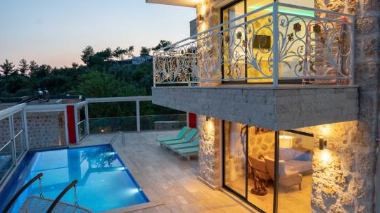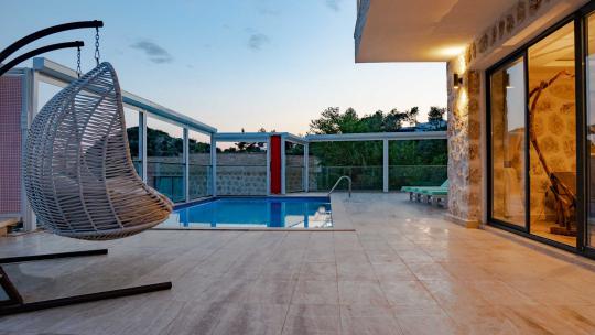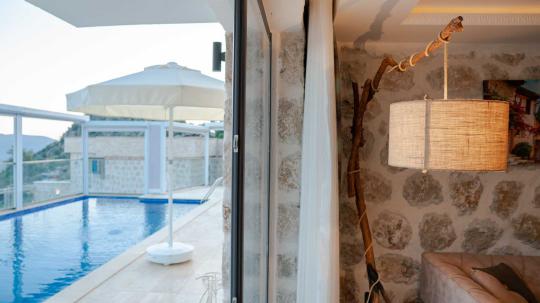 Kalkan İslamlar mevkiide bulunan Villa Narin 6, taş mimarisiyle öne çıkan, yeşilliklerle kaplı muhteşem doğa manzarasına hakim birbirine benzer 10 villanın bir arada bulunduğu bir site içerisinde yer almaktadır.Oldukça lüks modern dizayn edilmiş 2 yatak odalı 4 kişi konaklama kapasitesine sahip villamızda kış aylarında tatil yapmak isteyen misafirlerimiz için villamızın içerisinde kapalı ısıtmalı havuz bulunmaktadır. Ferah bir havuz terasına ve geniş bir bahçeye sahip villamızın havuz terası korunaklı hale getirilmiştir. Balayı çiftlerimiz ve muhafazakar ailelerimiz gönül rahatlığı ile tercih edebilirler.Villa Narin 6, birbirine yakın birden fazla villa kiralamak isteyen arkadaş grupları ve aileler için ideal bir seçenektir.Ayrıca site içerisinde bir resepsiyon ve alkolsüz içecekler, ekmek, sebzeler ve çeşitli yiyecekler satan küçük bir dükkan bulunmaktadır.