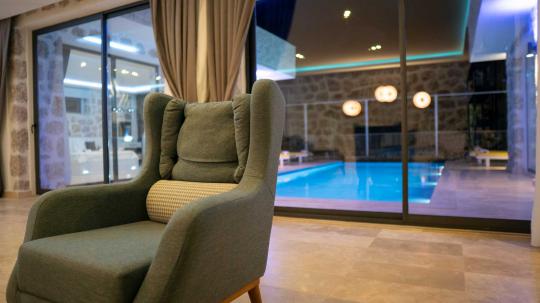 Villa Narin 7,Kalkan İslamlar Köyü’nde bulunmaktadır. Taş mimarisiyle öne çıkan villamız, birbirine benzer 10 villanın bir arada bulunduğu bir site içerisinde yer almaktadır. Özenle dizayn edilen villa narin 7, 4 kişilik 2 yatak odalı kapasiteye sahip olut suit yatak odasında jakuzi bulunmaktadır. Muhteşem doğa manzaralı olan villamızın havuz başı korunaklı olup dışarıdan gözükmemektedir. Konforlu bir şekilde tasarlanan villamızın bahçesinde keyifle oturmanız için bir salıncak bulunmaktadır. Isıtmalı havuzlu villalamızda kış aylarında da havuza girebilirsiniz.