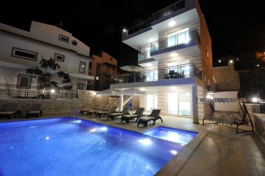 Villa Optimum; Kalkan Ortaalan mevkiide şık ve modern tasarımı ile 10 kişi konaklama kapasitelidir.Merkeze ve denize yakın konumdadır. Muhteşem Kalkan manzarası ile her yatak odası deniz manzaralıdır.