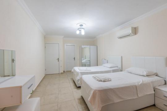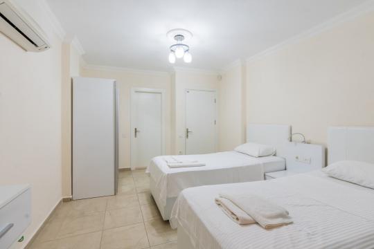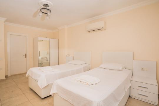 2 Adet tek kişilik yatak, Elbise dolabı, Komidin, Klima, Banyo bulunmaktadır.
