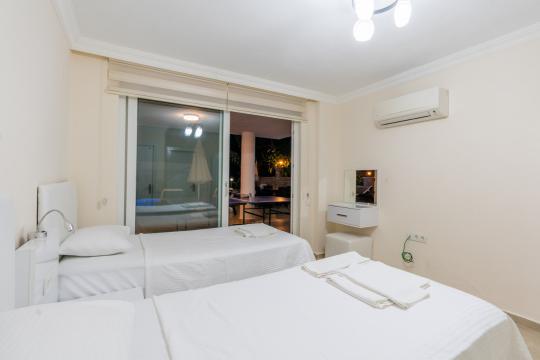 1. Yatak Odası : Deniz manzaralı suit oda 2 kişilik yatak odası (Zemin Katta)