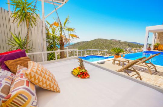 Villa Rima Pearl; Kalkan Akbel bölgesinde konumlanmış , harika deniz ve şehir manzaralı bir villadır.Villamız, 2 yatak odalı 4 kişi konaklama kapasitesine sahip olup, havuzu korunaklıdır.Balayı çiftleri için ve muhafazakar çekirdek ailelerimiz için oldukça uygundur. Yabancı gözlerden uzak rahat bir havuz keyfi yaşarken aynı zamanda mükemmel bir deniz manzarasını izliyor olabilirsiniz.