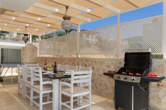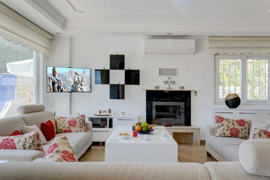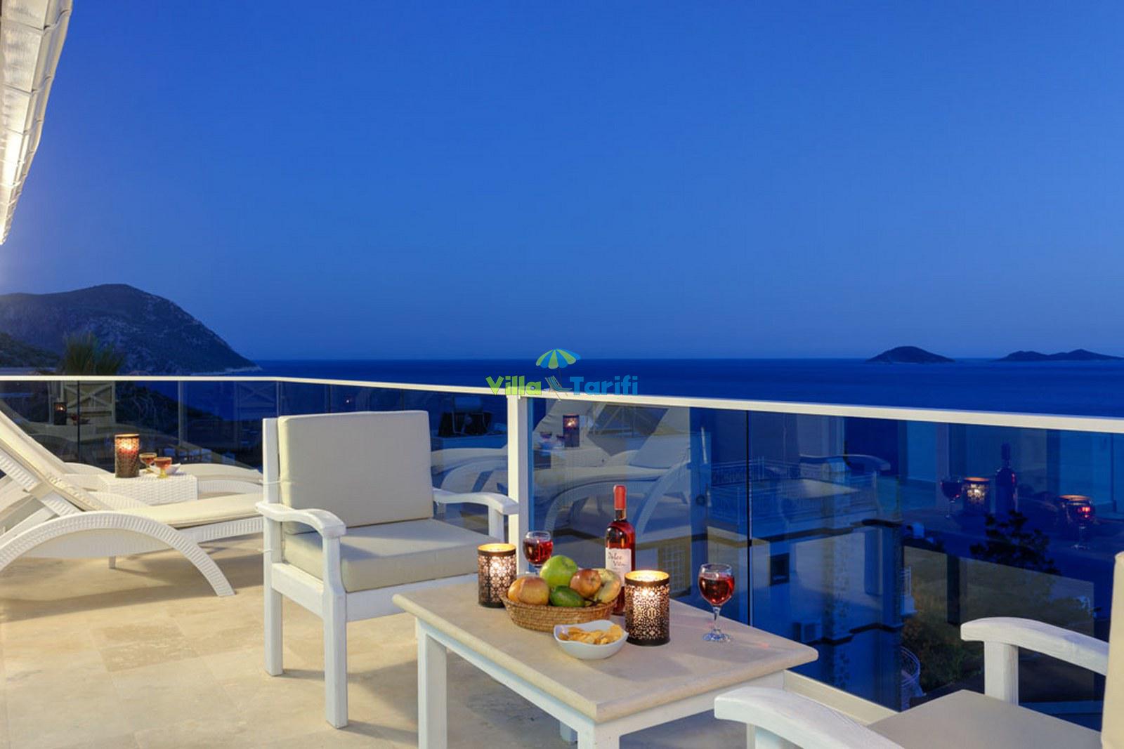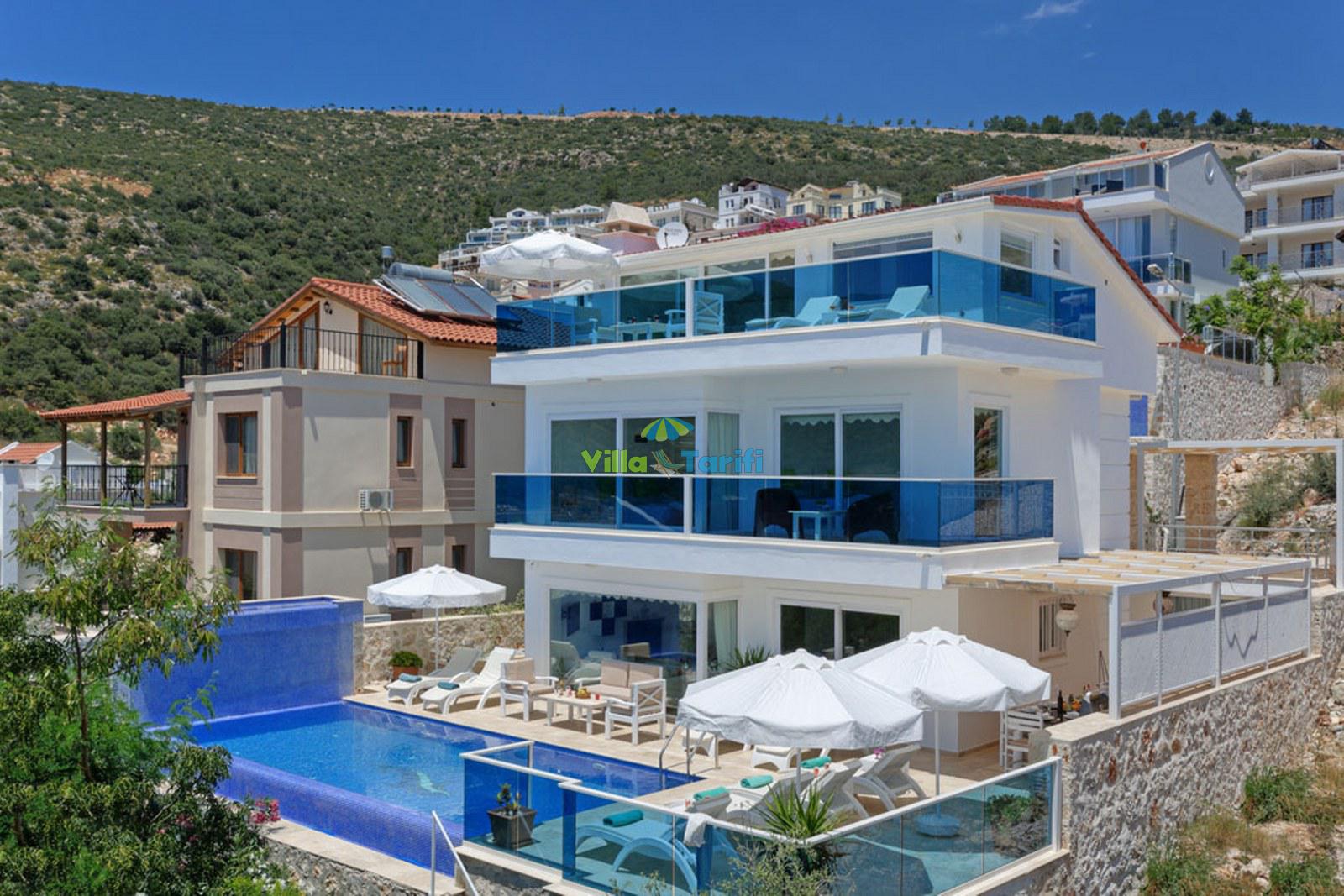 Kalkan Kalamar mevkiinde konumlananVilla Rüzgar, denize yürüme mesafesinde muhteşem deniz manzarası olan 4 yatak odalı 8 kişi kanaklama kapasitesine sahip tatil villasıdır. Villamız oldukça lüks bir tasarıma sahip olup villamızın bir yatak odasında jakuzi bulunmaktadır. Villa Rüzgar Geniş aileler, kalabalık arkadaş grupları ve balayı çiftleri için son derece uygun tatil villalarımızdandır.