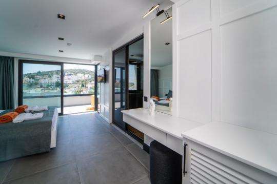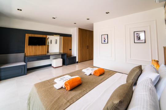 5.Yatak Odası: Süit oda içerisinde 1 adet çift kişilik yatak, elbise dolabı, klima, makyaj masası, komodin, banyo ve tuvalet bulunmaktadır.