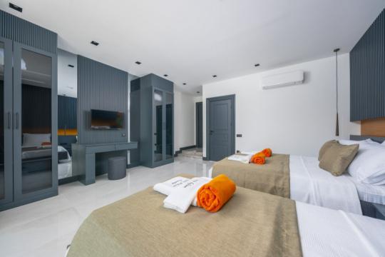 4.Yatak odası: Süit oda içerisinde 2 adet tek kişilik yatak, elbise dolabı, komodin, makyaj masası, saç kurutma makinası, klima, banyo ve tuvalet bulunmaktadır.