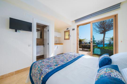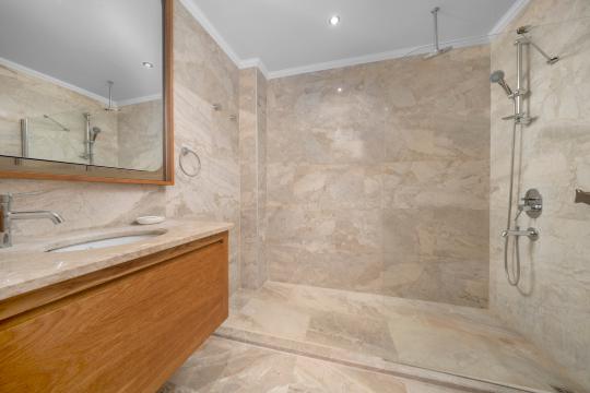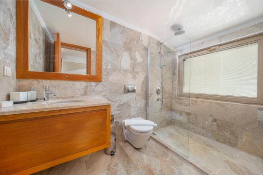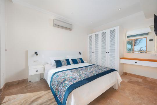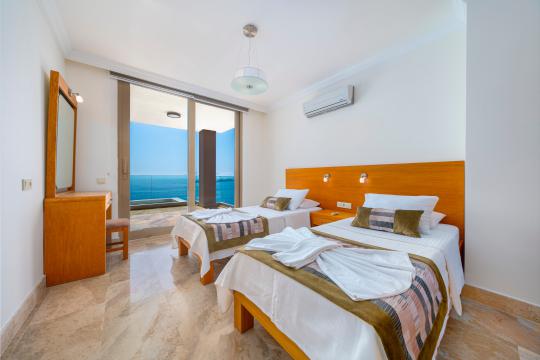 4.Yatak Odası: Bu oda havuz katın alt tarafında, garajın hemen üstünde bulunmakta olup içerisinde 1 adet çift kişilik yatak, klima, makyaj masası, elbise dolabı, komodin, kendine özel mutfak, banyo, tuvalet ve terası mevcuttur.