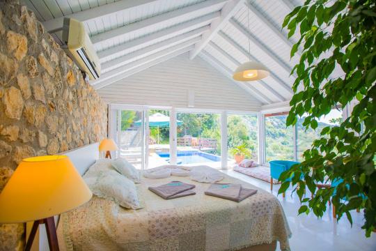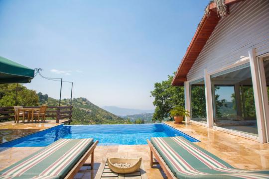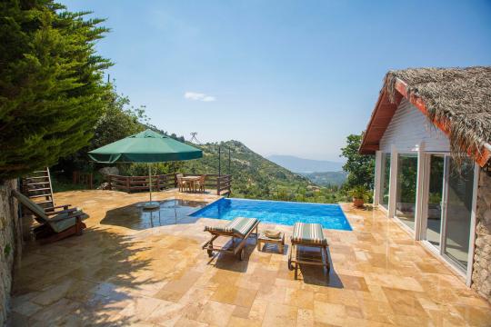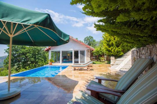 Villa Salkım Evi; Kalkan İslamlar Bölgesinde 1 yatak odalı 2 kişi konaklama kapasiteli doğa ile iç içe manzaralı tatil villası. Villa Salkım Evi muhteşem doğa manzarasına ev sahipliği yapmaktadır. Villamızın yatak odasında tatilinize renk katıcak jakuzi bulunmaktadır. Villamızın korunaklı havuz alanında oturma grubu, şezlong ve taşınabilir mangal bulunmaktadır. Villa Salkım Evi balayı çiftleri ve çekirdek aileler için oldukça ideal bir seçenektir.