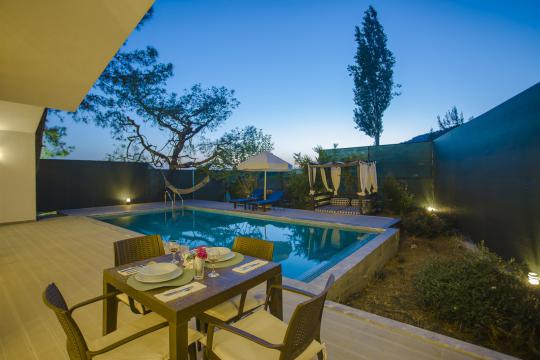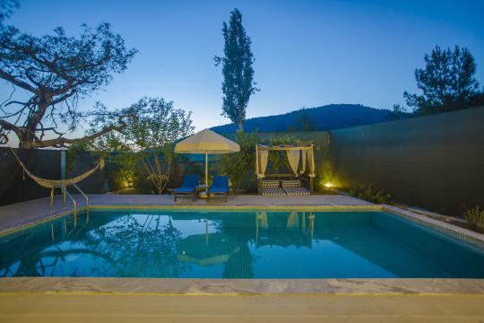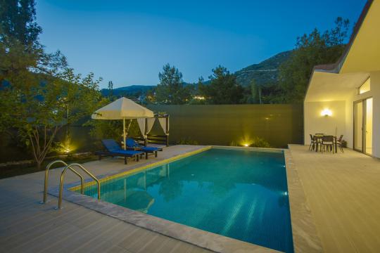 Villa Sarp; Kalkan İslamlar köyünde bulunan tek yatak odalı, 2 kişi konaklama kapasiteli özel havuzlu, doğa ile iç içe konumda olan muhafazakar ve jakuzili balayı villa seçeneklerimizdendir.Villamızın içerisinde bir adet yatak odası ve bir adet banyo bulunmaktadır. Yatak odası içerisinde çift kişilik yatak, klima, ebeveyn banyosu ve jakuzi yer almaktadır. Ortak alanda ise mutfak, salon, klima ve televizyon bulunmaktadır.Havuzu korunaklı ve bahçesi dışarıdan görünmeyen Villa Sarp mahremiyete önem veren misafirlerimiz için rahat ve sakin bir tatil fırsatı sunar.Kalabalık aileler ve yakın konumda villa arayışı içindeki misafirlerimiz için evimizin hemen arka tarafında yer alan Villa Derin bulunmaktadır.
