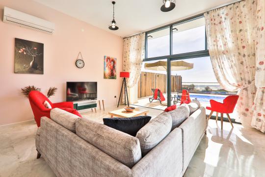 Villa Sevi, Kalkan Üzümlü bölgesinde konumlanmış 1 yatak odalı 2 kişi konaklama kapasitesine sahip kiralık tatil villasıdır. Modern ve lüks mobilyalara sahip olup, yatak odasında bulunan jakuzisi sayesinde daha keyifli bir tatil geçirmenizi sağlayacaktır. Geniş bahçe ve havuz terası ve korunaklı havuzuyla gözlerden uzak tatil geçirmek isteyen misafirlerimiz için iadeal tercihler arasındadır.