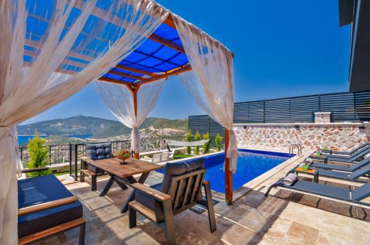 Villa Sılam; Kalkan Kördere mevkiide konumlanmış, muazzam deniz manzarasına sahip kiralık villamızdır. 2 yatak odalı, 5 kişi konaklama kapasitesine sahiptir. Doğa içerisinde bulunan seçeneğimizin havuz terası da tamamen korunaklı olup muhafazakar ailelerimizin de ilk tercihi olacaktır. Oldukça geniş havuz terasına da sahip villamızda, gün batımının da keyfini sürebilirsiniz.