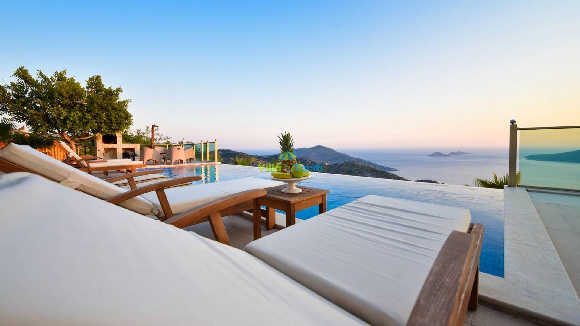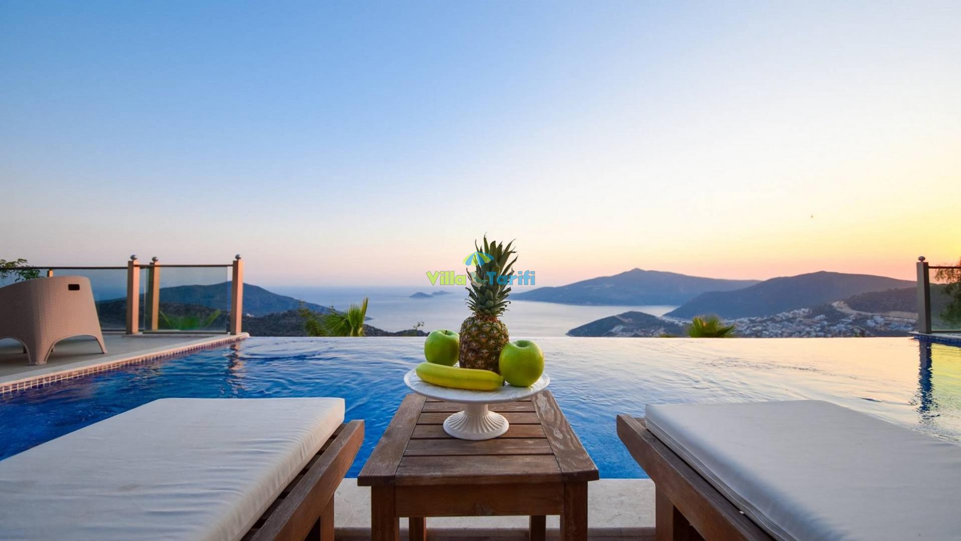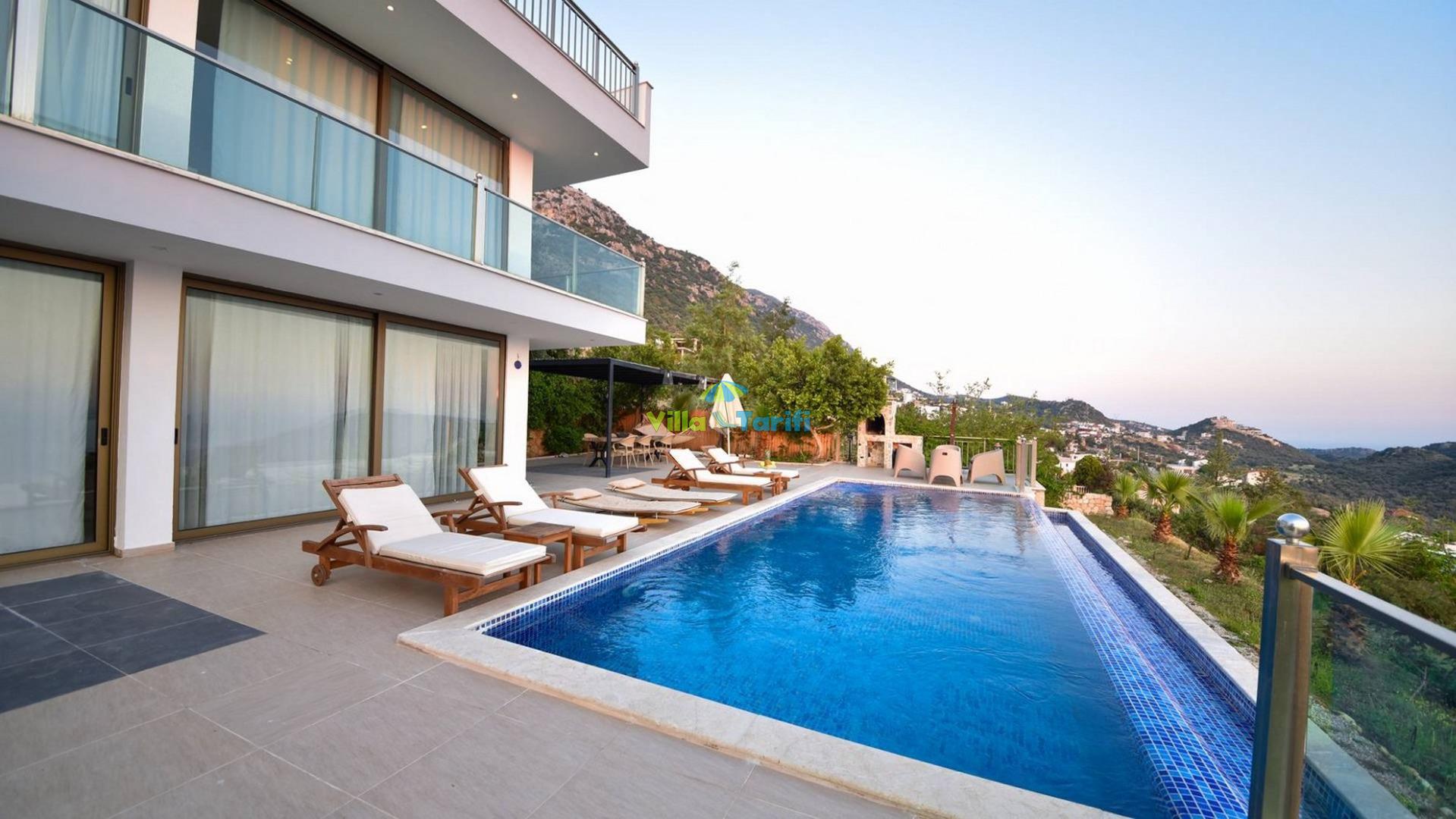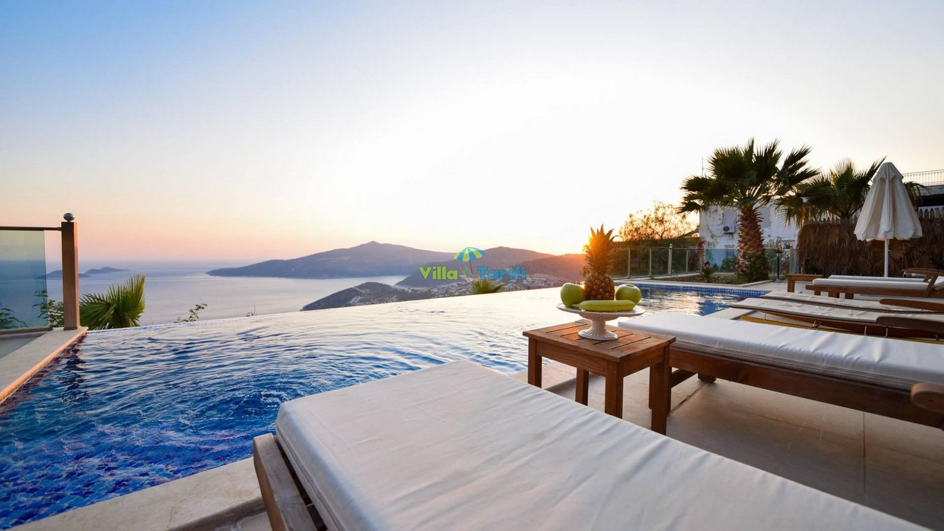 Villa Sunrise; Kalkan Kördere bölgesinde konumlanmış 3 yatak odalı 6 kişi konaklama kapasiteli panoramik deniz manzaralı tatil villasıdır. Villa Sunrise kalkan merkeze oldukça yakın bir konumda olup eşsiz doğa ve şehir manzarasına sahiptir. Villamızda oldukça kullanışlı ve ferah açık mutfak salon bulunmaktadır. Villamızın korunaklı havuz alanında sevdikleriniz ile keyifli vakit geçirebileceğiniz yemek masası, oturma alanı ve barbekü bulunmaktadır. Villa Sunrise kalabalık aileler ve arkadaş grupları için oldukça ideal bir seçenektir.