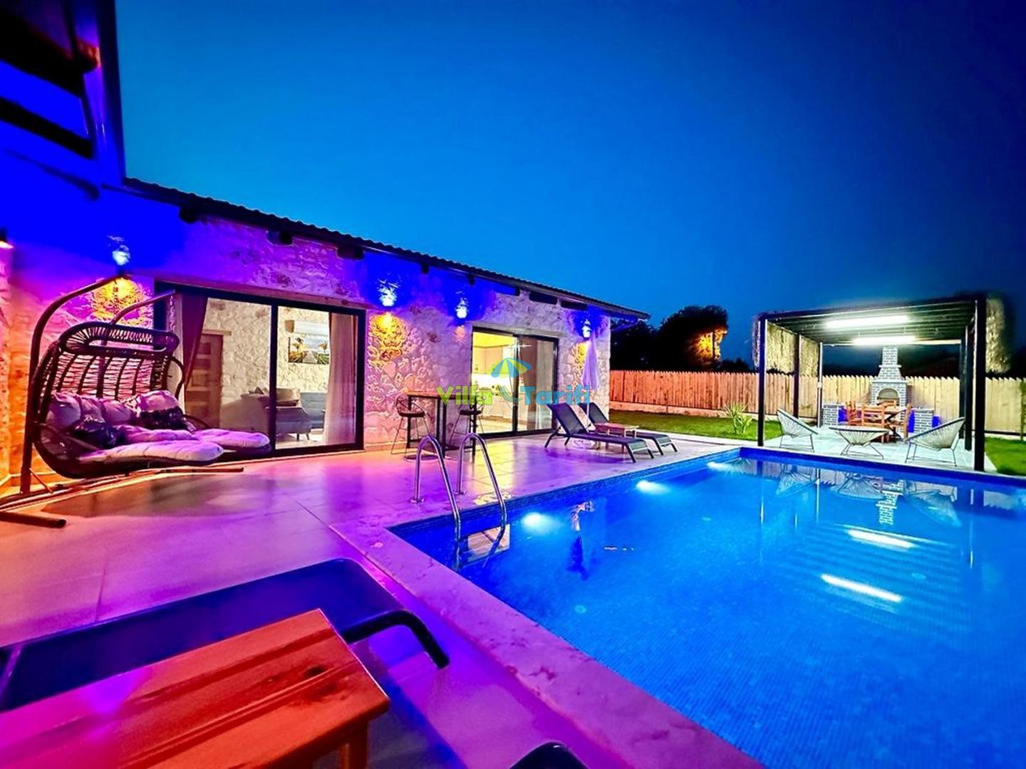 Villa Tomrul; Kaş Uğrar Bölgesinde konumlanmış 2 yatak odalı 4 kişi konaklama kapasiteli doğa ile iç içe manzaralı tatil villası. Villamız şık ve korunaklı bir tasarıma sahiptir. Villamızın suit yatak odasında günün yorgunluğunu atabileceğiniz jakuzi bulunmaktadır. Villamızın korunaklı havuz alanında tatilinize keyif katıcak bahçe salıncak, yemek masası, şezlong ve barbekü bulunmaktadır. Villa Tomrul sakin ve huzurlu tatil yapmak isteyenler için oldukça ideal bir tercihtir.