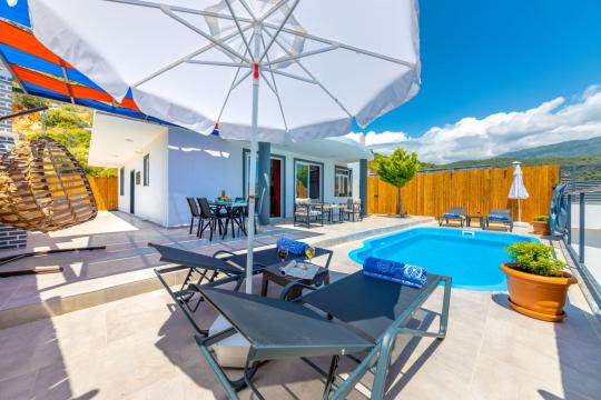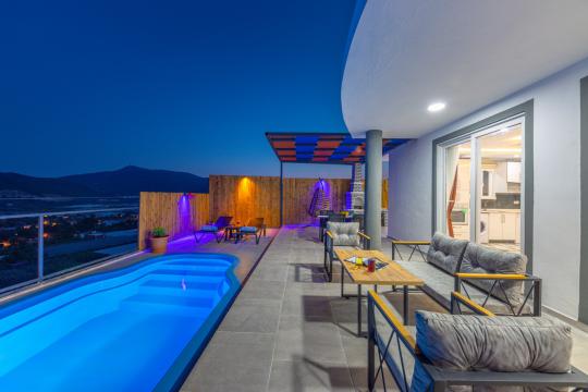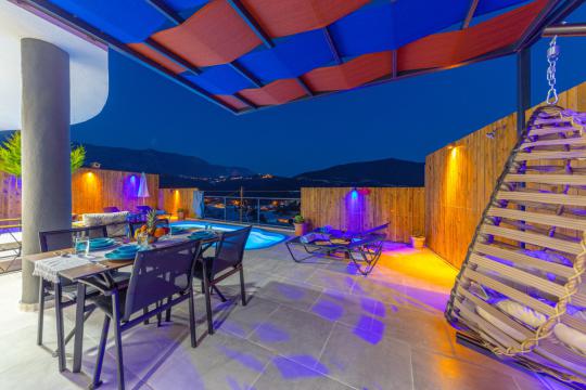 Villa Tuana ; Kalkan Yeşilköy mevkiinde konumlandırılmış olup 2 yatak odalı 4 kişi konaklama kapasitesine sahiptir. Villamızın bahçe alanı geniş olmakla birlikte , çocuklu aillerimiz için oyun parkı ,salıncak gibi aktivitelere bulunmaktadır. Ayrıca havuz çevresi dışarıdan görünmemesinden dolayı muhafazakar konseptine uygundur.Villamızın bir yatak odasında günün bütün yorgunluğunu atabileceğiniz jakuzi bulunmaktadır. Muhteşem doğa manzarasına karşı sevdiklerinizle birlikte unutulmaz bir tatil fırsatı sunmaktadır. Villamıza giden yolun 200 m'si beton yol ve yokuşludur.