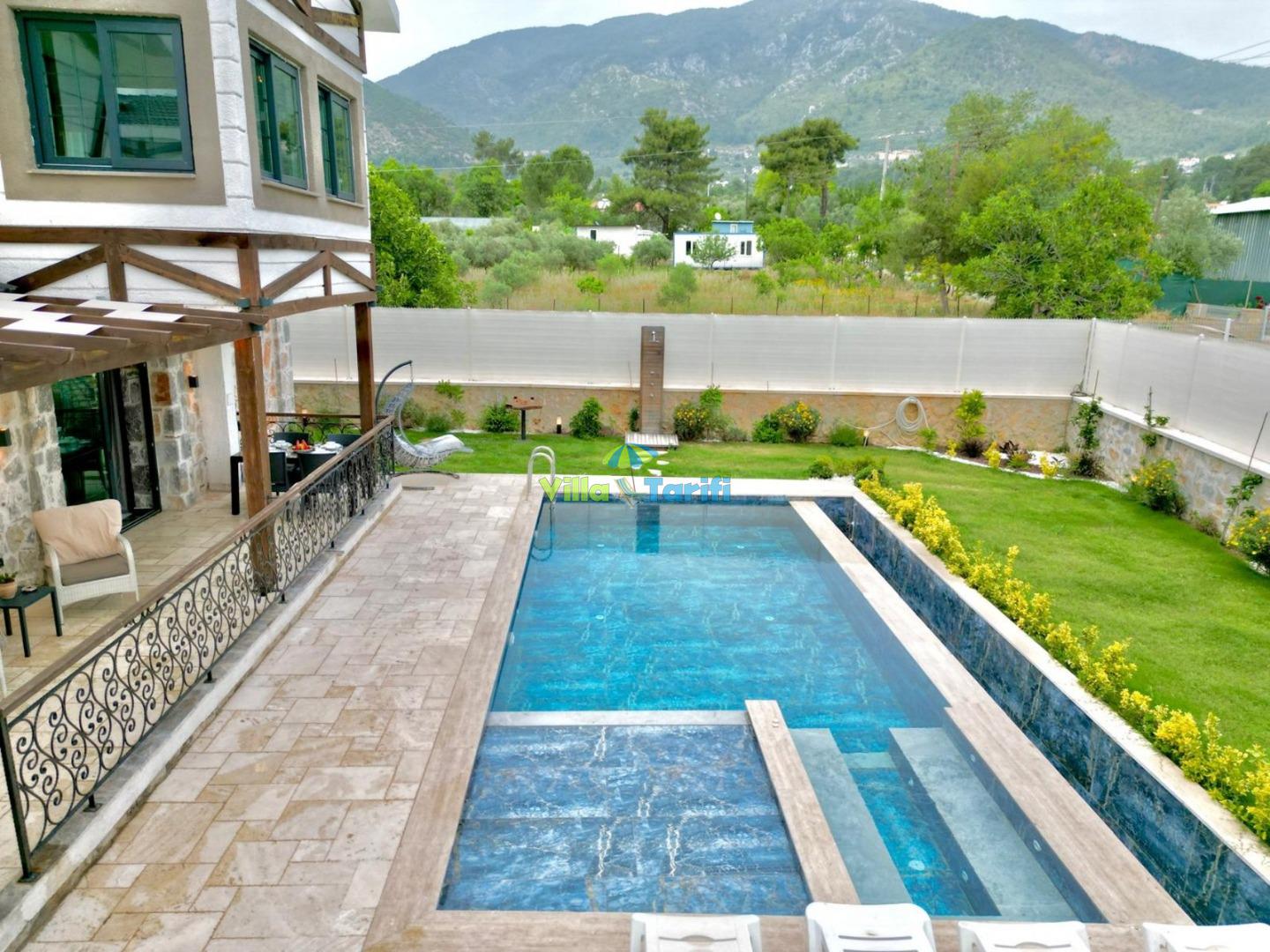 Villa Tulya; Fethiye Yeşilüzümlü mevkiide bulunan 3 yatak odalı 6 kişi konaklama kapasitesine sahiptir. Villamızda oldukça şık ve modern şekilde tasarlanmış olup tüm yatak odalarında konfora özen gösterilmiştir. Villa Tulyahavuz alanında keyifli vakit geçirebileceğiniz bahçe salıncak, oturma, grubu ve barbekü yer almaktadır.