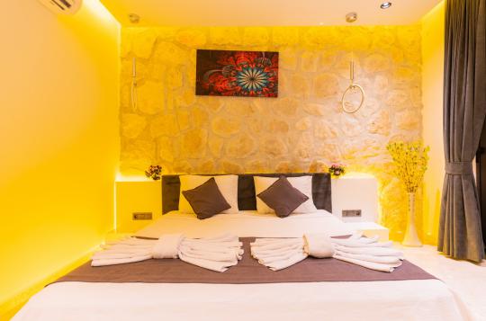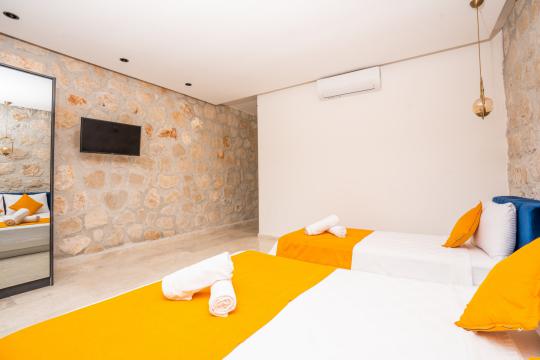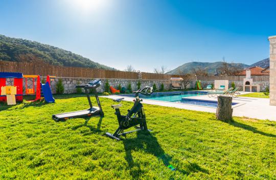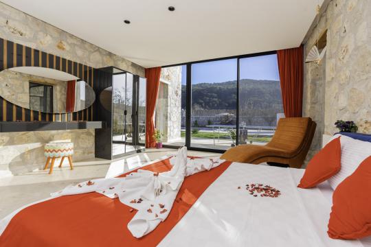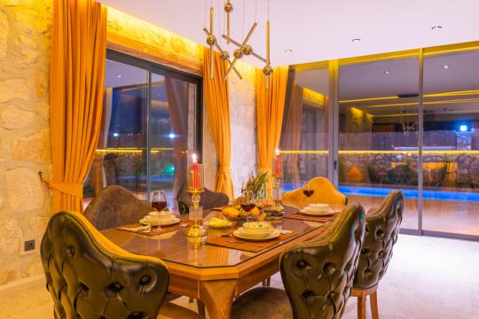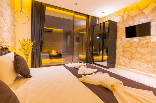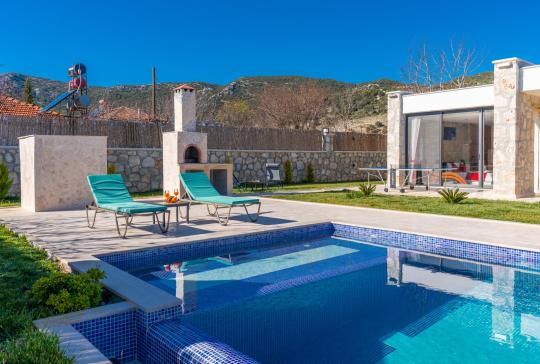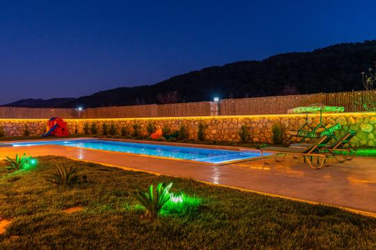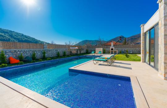 Villa VİP; Kalkan Sarıbelen mevkiide yer alan villamız 3 yatak odalı 7 kişi konaklama kapasitelidir. Villamızın çift kişilik yatak odalarının bir tanesinde günün bütün yorgunluğunu atabileceğiniz jakuzi bulunmaktadır. Villamız oldukça modern ve lüks bir dizayna sahip olup geniş bir havuz ve bahçe alanına sahiptir.Villamızın havuz alanında şezlong, yemek masası, oturma grubu ve barbekü bulunamaktadır. Villamızda kış aylarındada tatil imkanı sunan kapalı ısıtmalı havuz, sauna ve buhar odası bulunmaktadır. Villamızda aileniz ve arakdaşlarınız ile keyifli vakit geçirebileceğiniz masa tenisi, langırt, çocuk oyun alanı, trambolin, ve çeşitli spor malzemeleri bulunmaktadır. Villamız oldukça muhafazakar olup geniş aileler ve arkadaş grupları için oldukça ideal bir seçenektir.