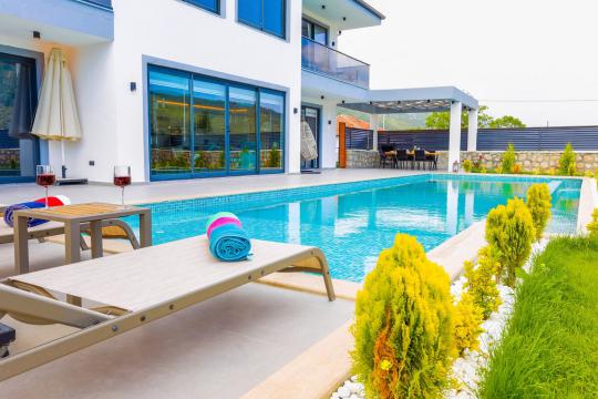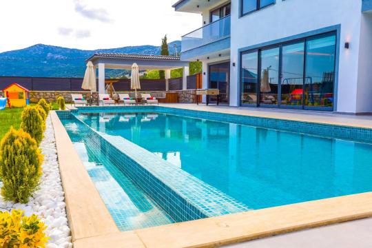 Villa White House; Kalkan Sarıbelen mevkiide bulunan villamız 2 yatak odalı 4 kişi konaklama kapasitesine sahiptir. Villamız doğa için bir konumda olup kalkan merkeze ve denize 13 km mesafede bulunmaktadır. Villamızda oldukça geniş ve ferah açık mutfak salon bulunmakta olup yatak odalarından bir tanesinde günün tüm yorgunluğunu atabileceğiniz jakuzi bulunmaktadır. Villamızda siz değerli müşterilerimiz için herşey en ince ayrıntıya kadar düşünülmüş olup keyifli vakit geçirebileceğiniz kapalı ısıtmalı havuz, hamam ve sanuna bulunmaktadır. Villamızın korunaklı havuz alanında aktivite olarak tambolin, masa tenisi ve langırt bulunmaktadır. Villa White House korunaklı yapısı sayesinde muhafazakar aileleler ve arkadaş grupları için oldukça ideal bir seçenektir.