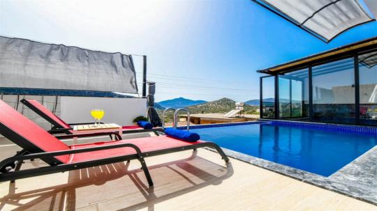 Villa Yaz 4; Kalkan Ulugöl mevkiide konumlanan villamız 1 yatak odalı 2 kişi konaklama kapasitesine göre dizayn edilmiştir. Her mevsim tatil için ideal olan villamızda kapalı ısıtmalı havuz bulunmaktadır. Villa Yaz 1' in alt katında konumlanan villamız birden fazla villa kiralamak isteyen aileler ve arkadaş grupları için ideal bir seçenektir. Korunaklı tasarımı ile balayı çiftleri ve çekirdek aileler için uygundur.