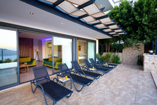 Villa Yusef; Kalkan Kördere mevkiinde konumlanmış muhteşem deniz manzarasına sahip 3 yatak odalı 6 kişi konaklama kapasitesine sahiptir. Özel yüzme havuzu ve havuz terası tamamen korunaklı hale getirilmiştir. Modern ve konforlu eşyaların kullanıldığı villamızın suit yatak odasında jakuzi bulunmaktadır. Geniş aileler ve balayı çiftleri için oldukça uygun ve çok tercih edilmektedir .