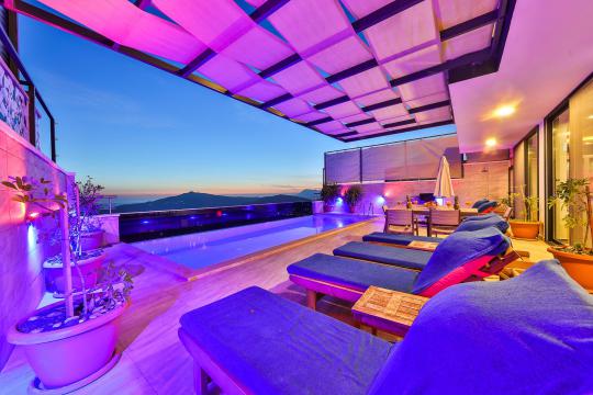Villa Zaza; Kalkan Kördere mevkiide konumlanmış villamız 3 yatak odalı 6 kişi konaklama kapasitesine sahiptir.Korunaklı özel yüzme havuzu ile muhafazakar aileler için ideal bir seçenektir. Muhteşem deniz manzarasına sahip olan villamızda tatilinizi daha keyifli hale getirece tüm detaylar düşünülmüş olup langırt, bilardo masası bulunmaktadır. Kapalı ısıtma havuzu ile kış aylarında da keyifli bir tatil fırsatı sunmaktadır.